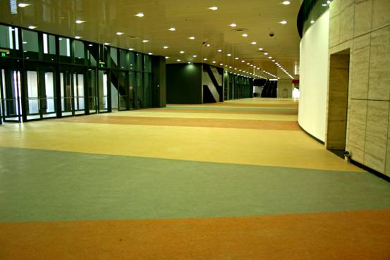 阿姆斯壮提供了环保亚麻地材-美莱亚麻及PVC卷材-健丽龙两个产品,共计用量达2万多平方米.我们的地面材料被主要铺设在了入口大厅和场馆内的主通道.并且采用了色彩丰富的拼花图案,不但提升了整个运动场馆的装修明快风格,更体现了弹性地材环保,设计感强的特点。